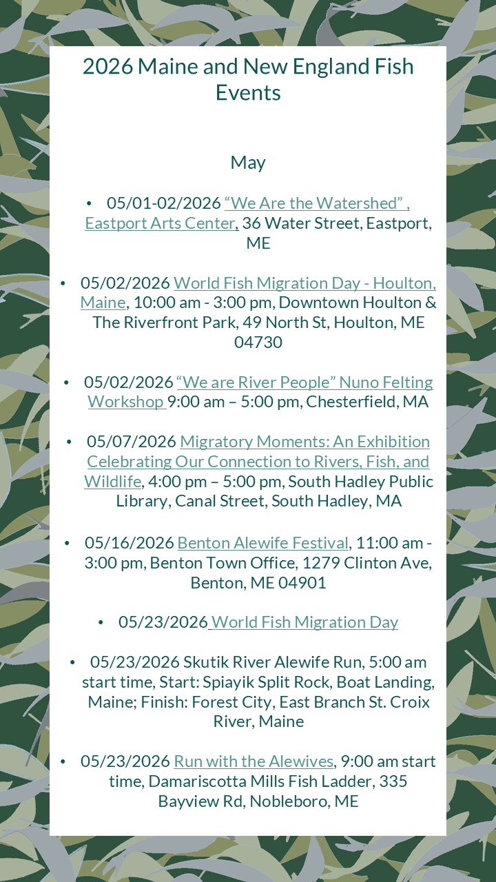 05/23/2026 5th Annual Pennamaquan Alewife Festival, 10:00 am – 5:00 pm, 12 Little Falls Road, Pembroke, ME